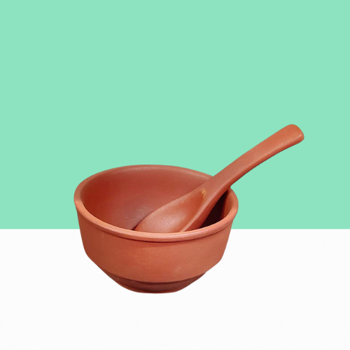 This clay soup bowl is a natural kitchen set, which used to serve soups. It is an eco-friendly kitchen set. It is a traditional kitchen bowl used to serve liquid foods. This clay bowl is made up of 100% natural products without any chemical coating. This clay soup set comes with one bowl and a spoon.